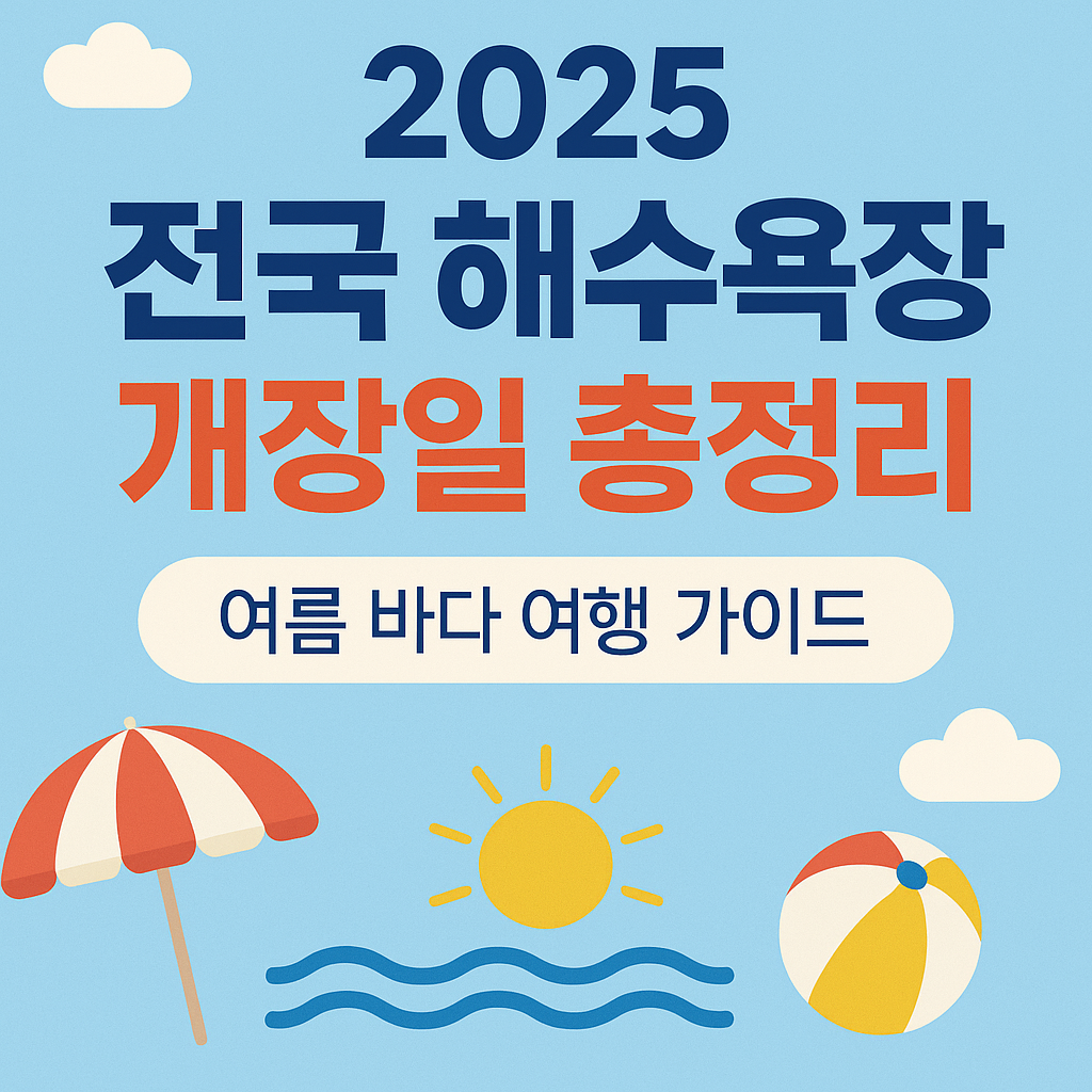 올여름, 대한민국 전역의 해수욕장이 순차적으로 개장합니다. 지역별 개장일과 폐장일, 야간개장 운영 정보까지 아래 표에서 한눈에 확인해 보세요! 🗺 해수욕장 개장일 알아보기 📅 지역별 해수욕장 개장 일정지역주요 해변개장일폐장일비고부산해운대, 송정, 광안리6월 21일해운대 9월 14일그 외 8월 31일해운대 연장 운영인천을왕리, 왕산, 하나개6월 21일9월 7~8일수도권 조기 개장울산진하6월 27일8월 31일경상권 대표 해변강릉·속초경포, 속초 등 20곳경포 6월 28일나머지 7월 4일8월 중순강원권 메인 해변충남대천, 만리포, 무창포7월 5~12일8월 17~24일만리포 야간개장전북·전남변산, 격포, 명사십리7월 4~12일8월 중순-경남사천, 거제, 경주7월 3~11일8월 중순-제주도6월 24..